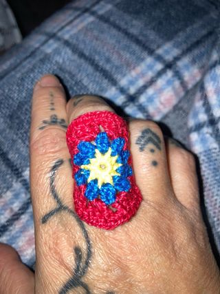 Anillo hecho a mano con técnica de crochet, luciendo un diseño de bandera. - Elaborado con hilo. - Detalle de diseño de bandera.(Se Realiza por Encargo)de la Bandera que prefieras..~Mas Cositas en Mi perfil..precio por unidad..