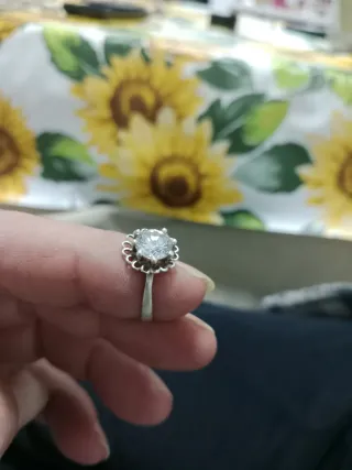 Elegante anillo solitario con circonita central. Anillo de plata con sello 295 De joyería, adjunto recibo. Sin usar, no es mi talla. Envío con caja y bolsa. Talla 14 - 17,19 mm