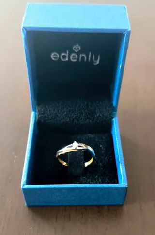 Elegante anillo de la marca Edenly, con un diseño que combina oro blanco y amarillo, y un pequeño diamante. - Diseño de dos tonos. - Detalle de diamante central.