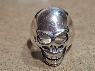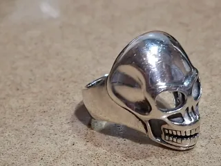 Anillo de plata con diseño de calavera grande y pesado de la talla 66 y un peso de 24 gramos - Diseño detallado de calavera. - Acabado plateado brillante.