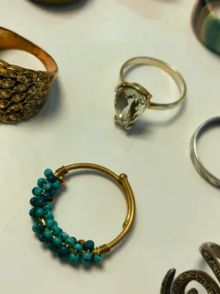 Lote de anillos dorados y turquesa