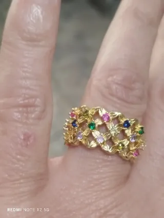 Anillo Vintage Baño Oro Talla 18 Multicolor