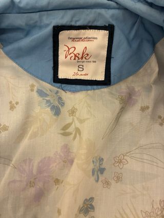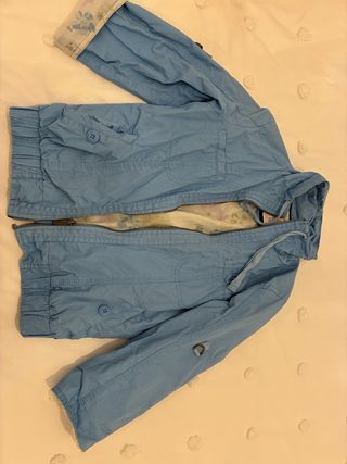 Cazadora ligera de tela en tono azul, con forro interior estampado floral. - Cierre de cremallera. - las mangas se pueden recoger en las anillas.