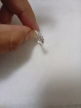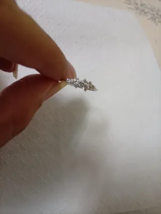 Elegante anillo en oro blanco, talla 16. Esta doblado un poco precio negiciable y tiene perdida de color ese lado - Diseño delicado y moderno. - Acabado brillante.