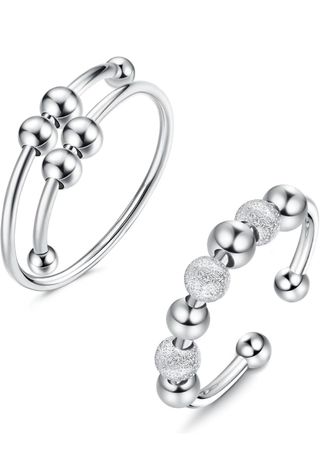 Conjunto de dos anillos ajustables con un diseño elegante de cuentas. - Fabricados en Plata de Ley. - Diseño abierto y ajustable para mayor comodidad. - Cuentas que añaden un toque de brillo.