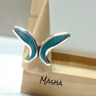 Anillo en forma de mariposa y esmalte nacarado. Mide 39 z 26 mm Zamak con baño de plata pura.