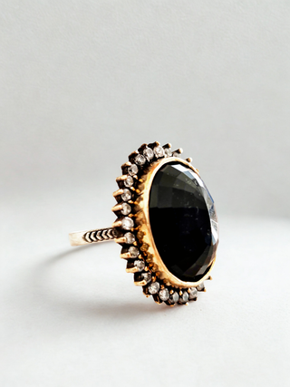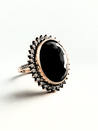 Elegante anillo vintage hecho a mano con plata 925 y una piedra central negra. - Diseño artesanal. - Piedra central de color negro. - Montura de plata 925.