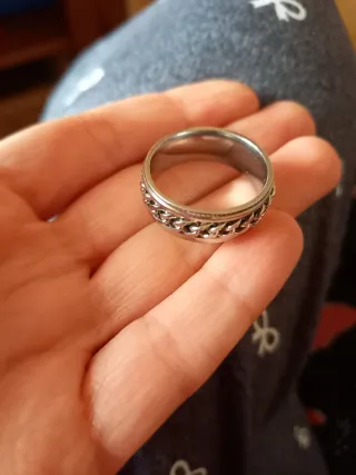Anillo de acero con diseño de eslabones. Dimensiones en las fotos - Material: Acero. - Diseño: Eslabones.