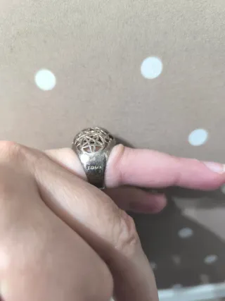 Anillo Tous de plata con un diseño intrincado y elegante. No lo he limpiado para que se vea que es de plata y se pone feo. - Diseño de filigrana. - Detalle de estrella en el centro.