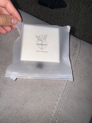 Anillo de la marca BAD SOCIALS con un diseño de corazón y ángel. - Color dorado. - Presentado en una bolsa de tela con cremallera. - Caja y bolsa que protegen anillo