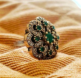 Anillo Vintage Plata con Piedras Verdes