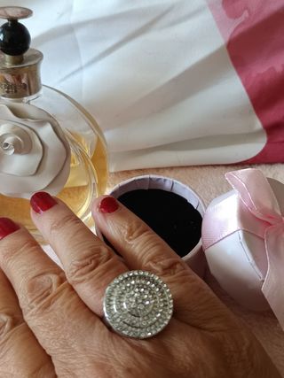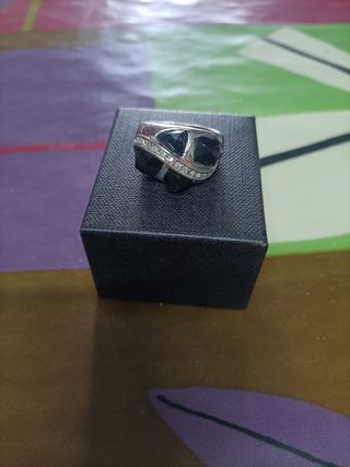 Precioso anillo de estilo moderno. - Elegante combinación de bisutería color plata , negro y piedrecitas - Diseño único y llamativo. - Ideal para un look sofisticado.