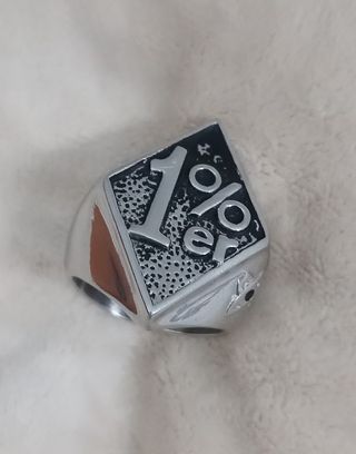 Anillo de acero inoxidable unisex con diseño 1%er en perfecto estado. Original pieza con sello en forma de rombo. Un anillo de estilo robusto y llamativo, ideal para que le des el significado que más te motive. Pago al contado. No realizo envíos, no preguntar por envíos, por favor.
