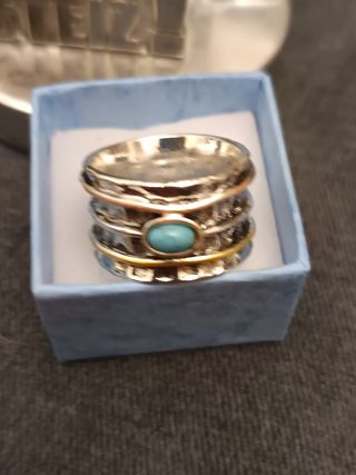 Anillo de estilo bohemio y vintage con un diseño único. - Detalles en plata. - Piedra central de color turquesa.