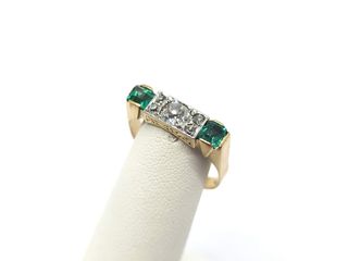 Anillo Oro 18k Diamante Natural y Esmeraldas