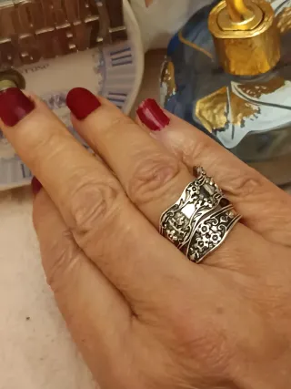 Anillo de platesdo con un intrincado diseño. - Detalles florales. - Estilo vintage.