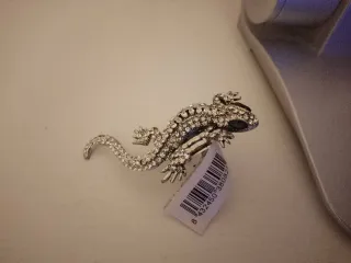 Este llamativo anillo tiene forma de lagarto con un diseño elegante con circonitas. - Incrustaciones brillantes. - Acabado plateado. - Talla ajustable. Elástico.