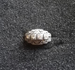 Anillo antiguo lleva 3 generaciones , oro blanco, 4 fiamantes en coroma y 14 diamantes en grabado mas pequeños grabado antiguo.precio negociable