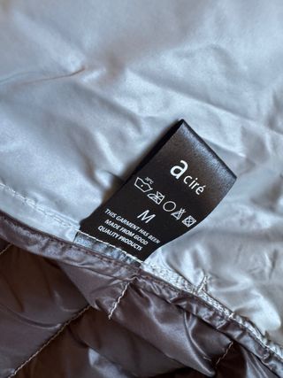 Anorak acolchado de Stradivarius con un llamativo efecto brillo. Presenta un diseño moderno y elegante.Talla M pequeña. - Cierre de cremallera. - Bolsillos laterales con cremallera. - Cinturón a juego.