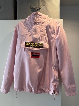 Anorak estilo anorak en color rosa. - Cierre de media cremallera. - Bolsillo canguro con solapa. - Cremallera lateral. - Puños ajustables.