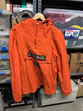 Abrigo tipo anorak de la marca Napapijri en color naranja. Cuenta con un bolsillo frontal grande y capucha. - Cierre de cremallera parcial. - Parche con logo en el pecho. - Diseño de anorak.