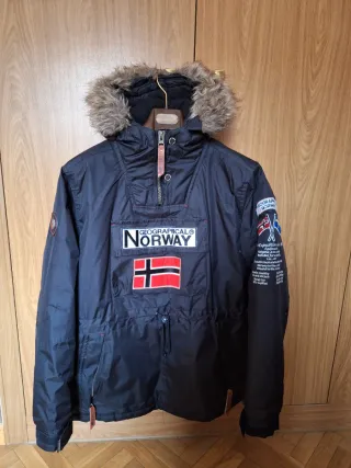 Abrigo de Geographical Norway con capucha. Como nuevo, usado en 2 ocasiones. - Diseño anorak. - Detalle de parches. - Cierre de cremallera frontal.
