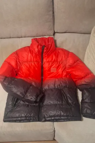 Anorak con un diseño degradado de rojo a negro. Es una prenda de abrigo con un estilo moderno. - Cierre de cremallera. - Bolsillos laterales con cremallera. - Cuello alto.