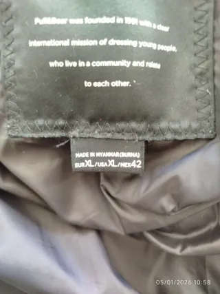 Anorak-parka de la marca Pull and Bear. - Color azul. - Diseño con capucha. - Cierre de cremallera. - Aunque es XL, es grande y más bien XXL