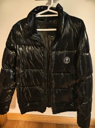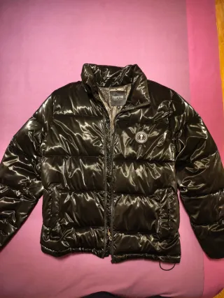 Anorak Trapstar de color negro con acabado brillante. Muy poco uso. - Diseño acolchado. - Cuello alto. - Cierre de cremallera frontal. - Logo circular en el pecho. - Logo en la espalda bordado