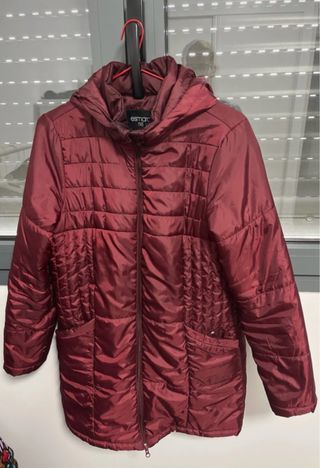 Anorak acolchado de color granate. - Diseño con cuello alto. - Cierre de cremallera frontal. - Dos bolsillos laterales con cremallera.