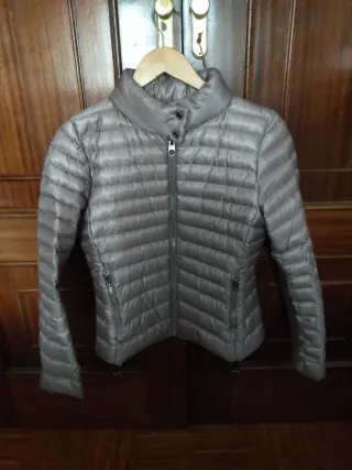 Anorak de plumas marca Wedge, de Decathon. Talla XS (38). Bolsillo interior y 2 exteriores con cremallera. Largo 63. Largo de manga 55 cm. Como nuevo