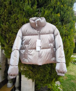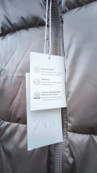Anorak acolchado de la marca Zara en color visón. - Cierre de cremallera. - Cuello alto. - Bolsillos laterales.
