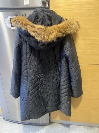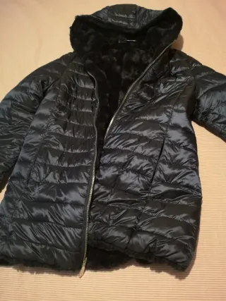 Anorak reversible. No tiene etiqueta con la talla, podría ser una M ( ver foto con medidas). De pelo muy calentito. Con capucha. El cuello está un poco descolorido.