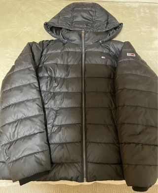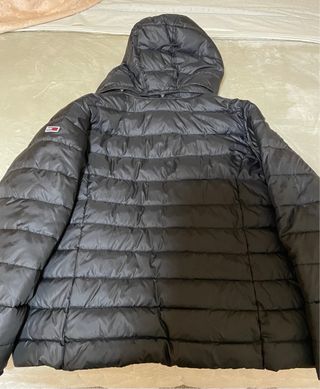 Anorak nuevo acolchado de Tommy Hilfiger Jeans, talla 2XL equivale aprox. a una talla 48, en color negro. Relleno sintético. Diseño moderno y cómodo, lo vendo por cambio de talla, me lo he puesto dos veces. - Capucha desmontable. - Cierre de cremallera frontal. - Bolsillos laterales.