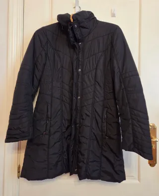 Abrigo acolchado con capucha y bolsillos En un color verde oliva muy bonito Muy poco uso, está en muy buen estado No pone la talla pero es como una XL, pídeme medidas si las necesitas