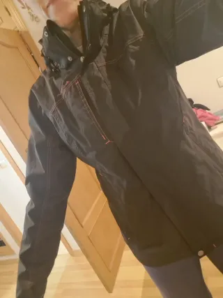 Abrigo tipo anorak marca tenth. Es de color rosa claro y negro talla M. Tiene cremallera hasta el pecho, un bolsillo grande en el centro y cremalleras a los lados para poder poner mejor. Usado muy pocas veces. Se aceptan ofertas.