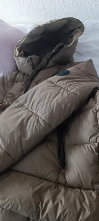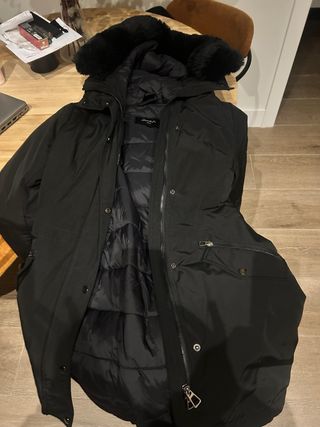 Ideal, abrigo tipo anorak con un diseño acolchado tipo plumas, con pelo en la capucha y cuello. Es una prenda cálida y estilosa. Con forro. Costaba 60€ lo dejo por lo que me costó 30€. Muy muy bonito. - Diseño acolchado. - Capucha y cuello con acabado de pelo muy suave. - Cierre de cremallera y corchetes frontal.