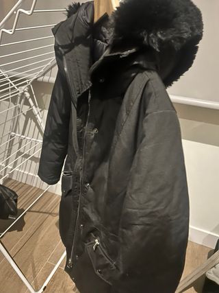 Anorak negro largo con cuello de pelo sintético