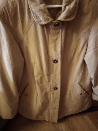 Anorak de la marca Canda en talla 46. Una prenda versátil y cómoda. De axila a axila mide 58 cm y de largo 84 - Color beige. - Cierre de botones. - Bolsillos laterales con solapa. Interior acolchado - Cuello camisero. Descuento del 10% en dos o más artículos de mis anuncios y 25% a partir de 5