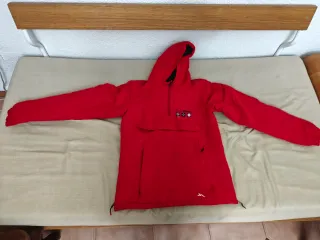 Chaqueta anorak de color rojo con capucha y bolsillo frontal. - Cierre de media cremallera. - Puños ajustables. - Cordones en la cintura para ajustar.