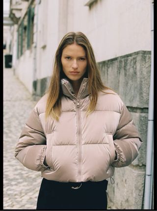 Anorak corto de Mango en color rosa. Tiene un diseño acolchado y cuello alto, efecto encerado - Cierre de cremallera. - Bolsillos laterales.