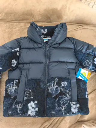Anorak Columbia con un diseño moderno y detalles únicos. - Combinación de tejido acolchado y borreguito. - Estampado floral en tonos azules y grises. - Cuello alto para mayor protección. - Cierre de cremallera frontal.