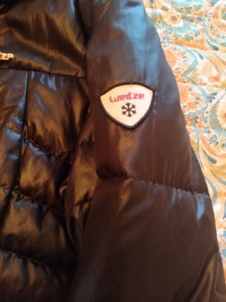 es una cazadora muy abrigosa, con adaptables para puños y cintura, impermeable que pesa poco y estampado bonito