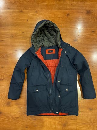 Una parka con capucha BOSS que se puede sacar con una cremallera. para niños talla 12 Esta prenda es parka con forro polar en su interior y eso hace que abrigue un monton. Tiene Goma en los puños para no dejar pasar el frío e insignia de logo en todo su interior incluye varios bolsillos y un cierre de cremallera oculto. Talla 12 años