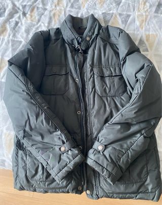 Anorak acolchado de Zara. Bolsillos delanteros con forro polar dentro. Color como verde botella. - Muy calentito para climas frios. Incluye 40% pluma y 60% plumón pato gris - Diseño moderno y confortable. - Cuello subido con capucha integrada y ajustable con cordones . - Manga larga con puño interior - Cierre de cremallera y corchetes