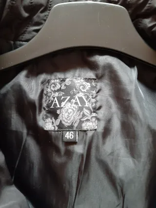 Anorak largo de color negro, con capucha y cierre de cremallera. - Diseño acolchado. - Bolsillo con solapa en manga. - Largo hasta la rodilla. -Con un corte que se ajusta un poco, no es recto, evita parecer un globo. -Los bolsillos cierran con cremallera invisible. -La capucha es desmontable. -Muy calentito y favorecedor.