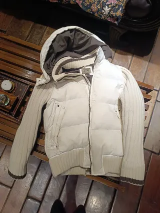 Anorak con capucha, ideal para un estilo casual. - Diseño acolchado en el frente. - Mangas de tejido de punto. - Cierre de cremallera frontal. - Interior calentito