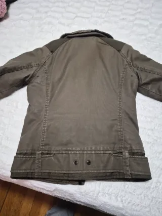 Aunque en la etiqueta ponga XL. Es entre una M y una L. Chaqueta estilo anorak y americana. Una cremallera separa la parte interior. - Cierre de botones. - Bolsillos frontales.