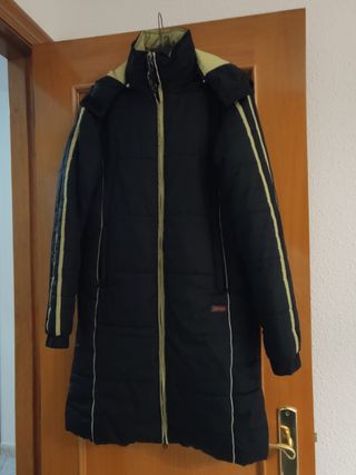 Chaqueta larga de invierno, tipo anorak Larga hasta la rodilla Color negro con rayas verdes Es muy cómoda y caliente y no pesa nada Se le ha dado muy poco uso Está en buen estado La capucha viene con una cremallera y se puede quitar Los bolsillos van con cremallera y tiene un bolsillo interior 🤝📦 Envío o entrega en mano en Barcelona o Cambrils (Tarragona)