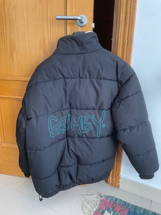 Anorak o chaqueta de esquí acolchado estampado gris con capucha. Poliester, nylon y algodón. De la marca Paul Frank. Talla L. Usado pero bien conservado. La capucha que se podía sacar, ahora no se puede porque está en un pequeño extremo de la cremallera cosida, si no se quiere la capucha se puede descoser muy fácil. De todo hay fotos y de las medidas en cm. hay fotografías. Pago y envío sólo a través de la aplicación, en persona no.
